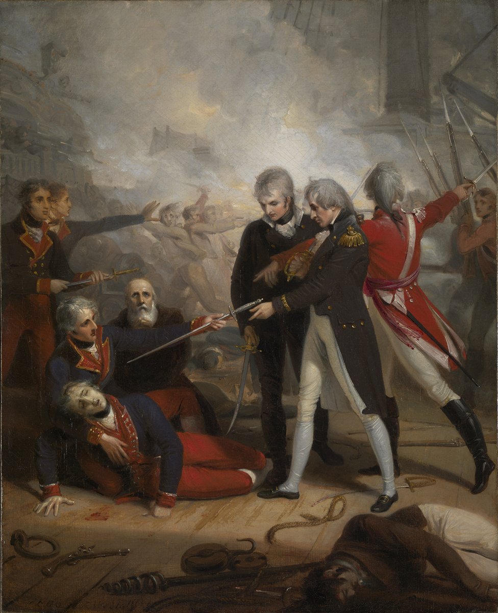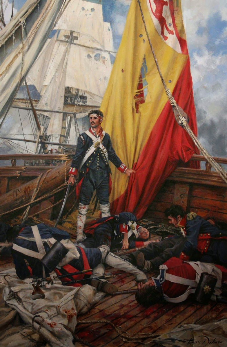 Tras despejar el cubierta principal y el alcázar en el abordaje, un oficial inglés observó que el pabellón español seguía ondeando y ordenó a varios de sus hombre seguirlo para poner remedio a esto. El granadero español les dio el alto desde la toldilla.