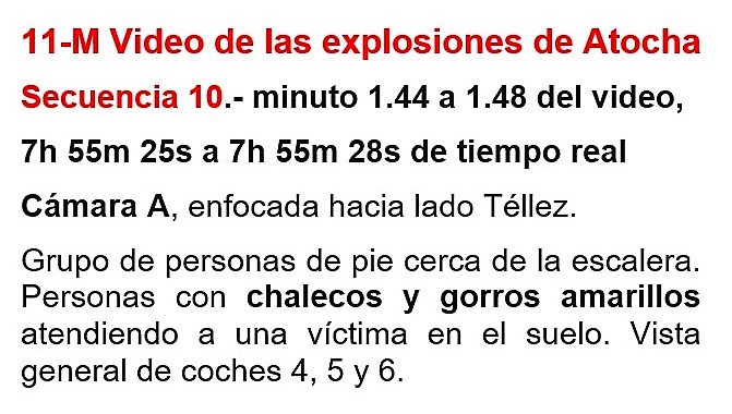 También intercalada con posterioridad a la edición del vídeo A. En tiempo real, está situada entre las secuencias 9 y 8. Sigue la atención a las víctimas antes de la alarma de las 7:57, que vimos en la secuencia 8