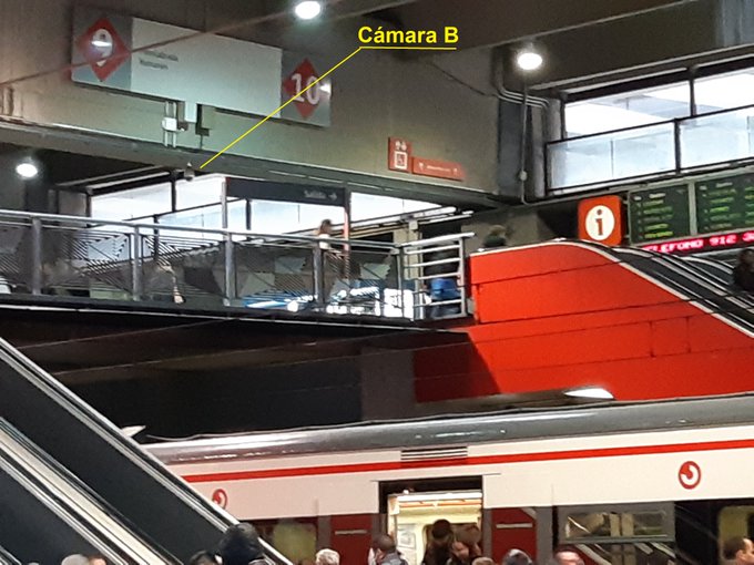5 - CÁMARA B.- En la misma pasarela que la A, pero lejos del tren atacado. Está sobre el andén 5, el que sirve a la vía 9 que va a Fuenlabrada. Su única toma está efectuada mirando al túnel que va a Chamartín.