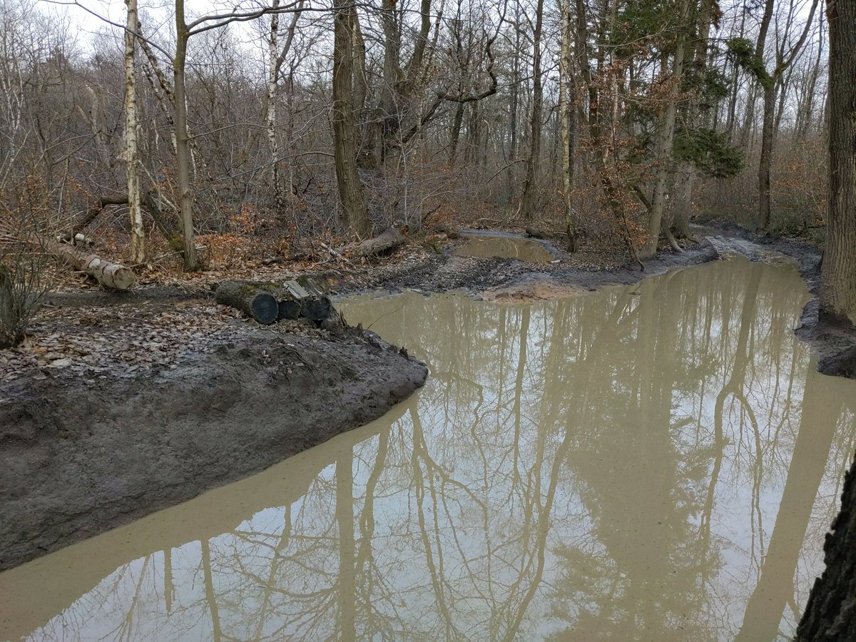 … Ces carrières de Feularde sont un labyrinthe de petits lacs, mares, flaques d'eau dans un terrain boueux (argileux) dévasté par les traces d'engins d'exploitation forestière et/ou de quads ou motocross. Pas agréable du tout de s'y perdre. ……