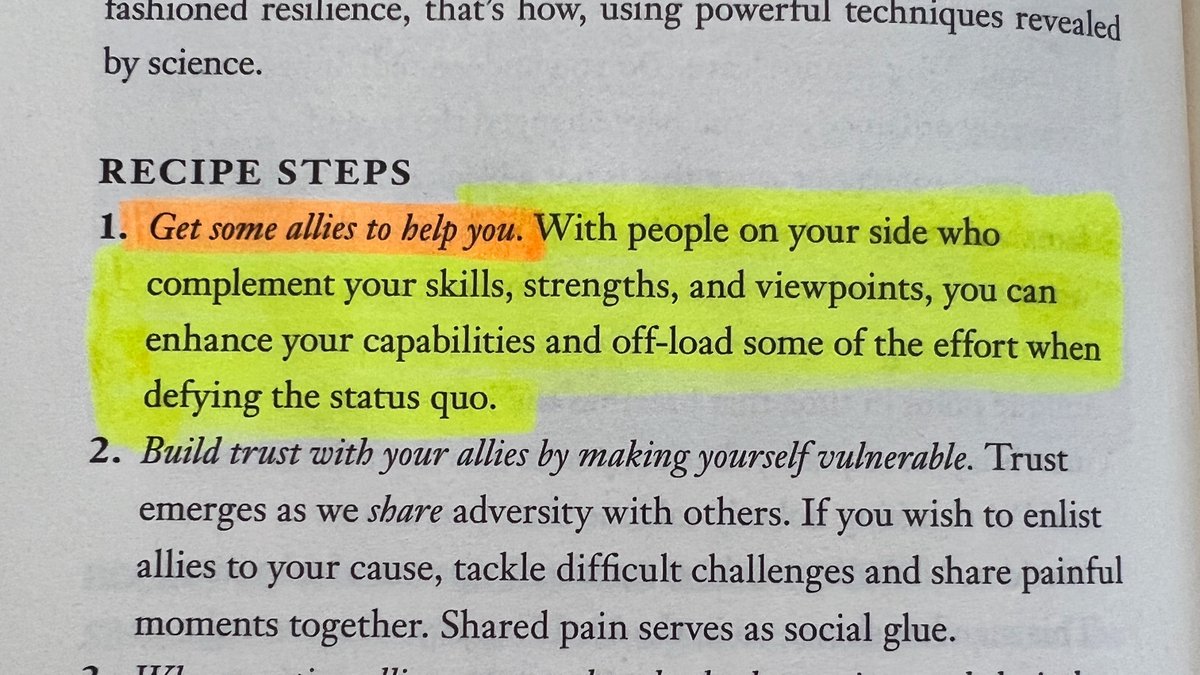 "With people on your side who complement your skills, strengths, and viewpoints, you can enhance your capabilities and off-load some of the effort when defying the status quo."