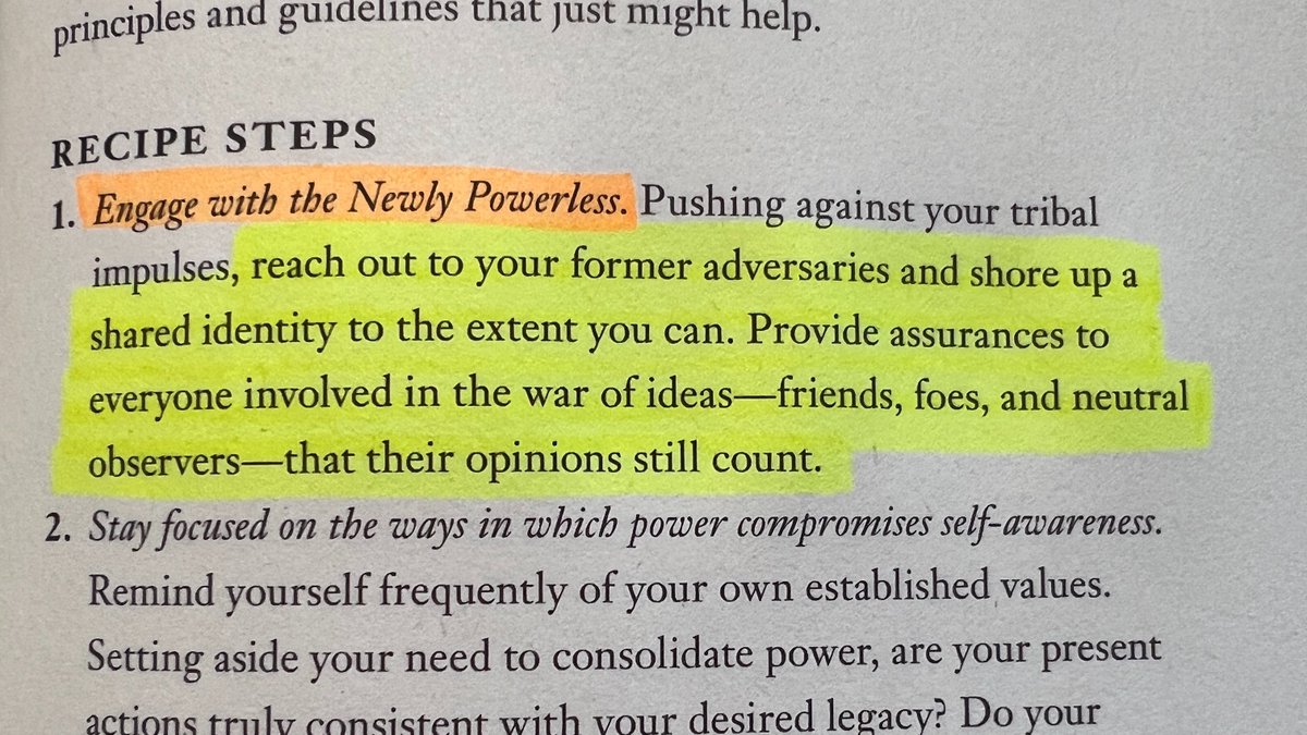 "Reach out to your former adversaries and shore up a shared identity to the extent you can. Provide assurances to everyone involved in the war of ideas–friends, foes, and neutral observers–that their opinions still count."