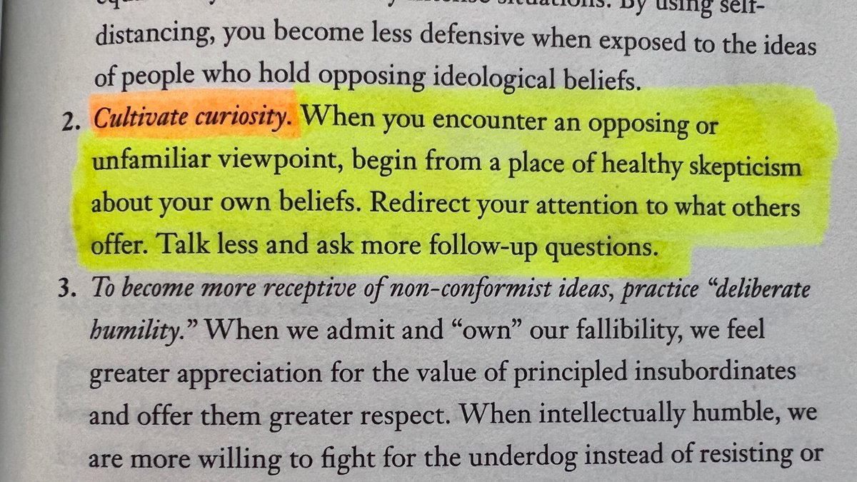 "When you encounter an opposing or unfamiliar viewpoint, begin from a place of healthy skepticism about your own beliefs. Redirect your attention to what others offer. Talk less and ask more follow-up questions."