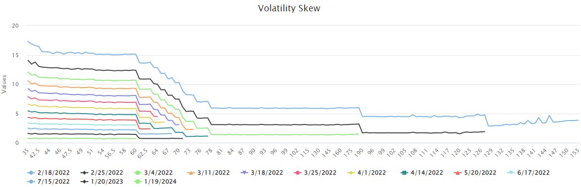 This type of skew is called a “smirk” and is expected with an upcoming catalyst, such as $RBLX's inclement ER in this example. There would be greater speculation and more volatility with such a catalyst on the horizon.