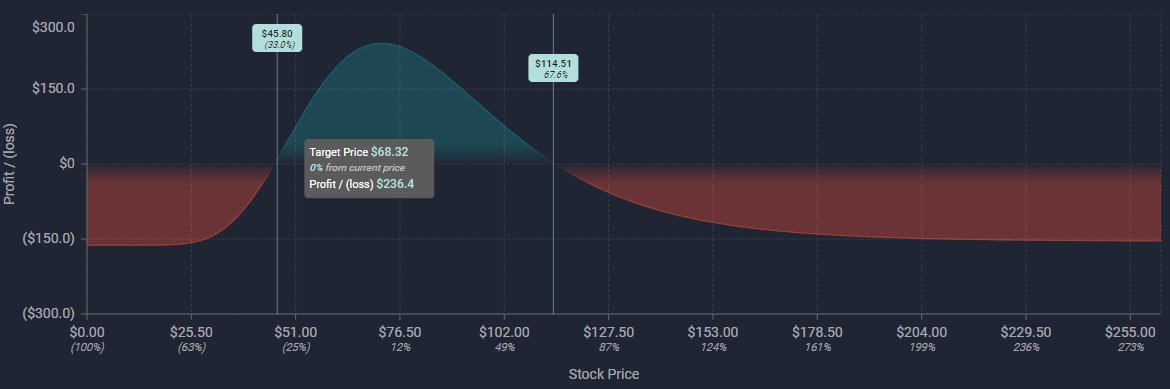 - As you can see in both, max. profit potential spikes up in the middle, and there is a "net" prior to exp. of the short.