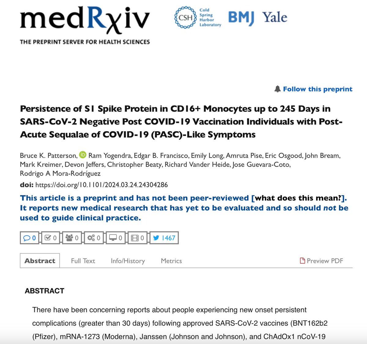 He showed that the viral fragment of the SARS2 S1 subunit alone was able to elicit cell signaling and helping to cause more severe COVID. > tinyurl.com/3xuzhync