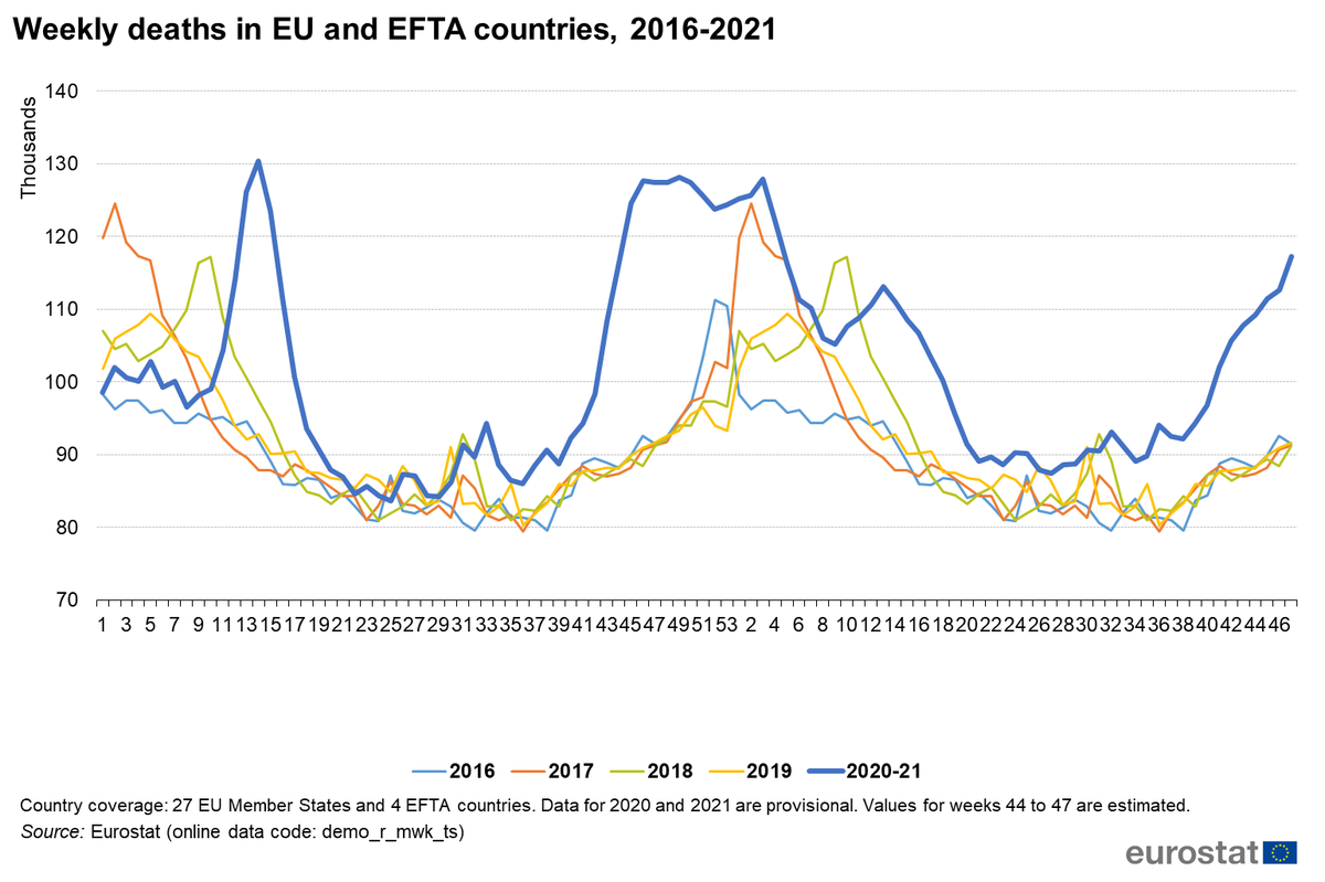 Bijna 1.1 miljoen méér overledenen tussen januari 2020 en begin december 2021, vergeleken met het gemiddelde in 2016-2019 in de 31 EU/EFTA landen. ec.europa.eu/eurostat/stati…@EU_Eurostat