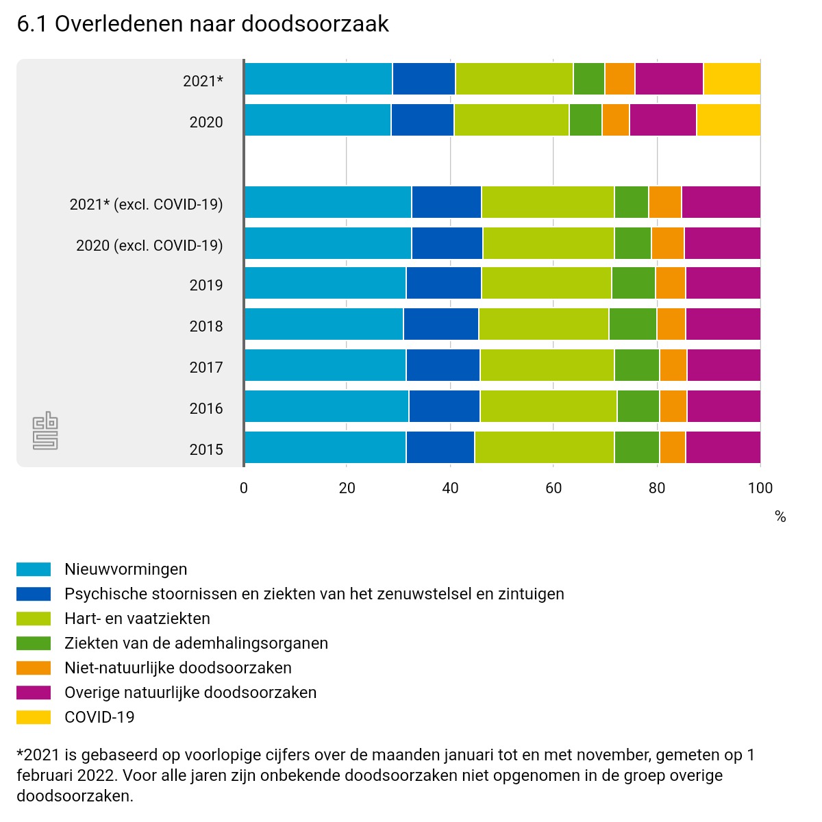 [Op basis van schattingen met onvolledige doodsoorzakengegevens uit oktober (92% dekking), november 2021 (87% dekking)]