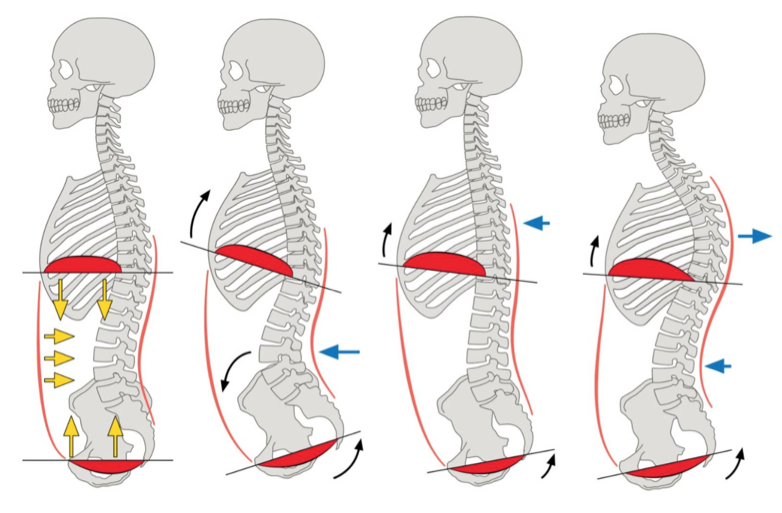 Learning to hold pelvic floor tension is a function of crawling, as children do, and then you learn to stand with it, and then you learn to walk, run, squat, hinge with this same patterning. HIPS BEHIND THE RIBCAGE