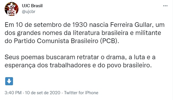 Vocês ficam aí fazendo piada, vão acabar ofendendo a UJC que fez esse lindo trabalho gráfico pra homenagear o poeteiro.