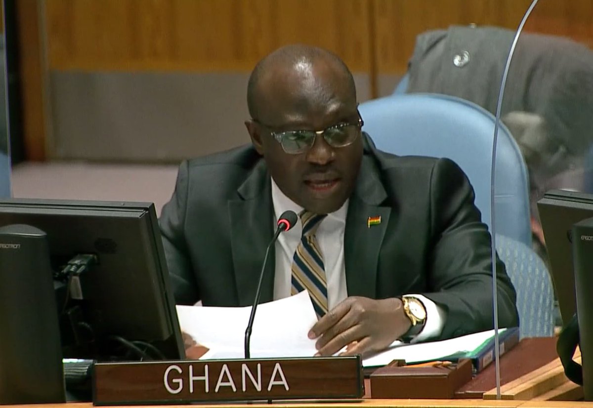 The second African UNSC member Ghana spoke next also highlighting humanitarian concerns for civilians, and the importance of peaceful diplomatic resolution disputes and the prohibition of using threats of military force.