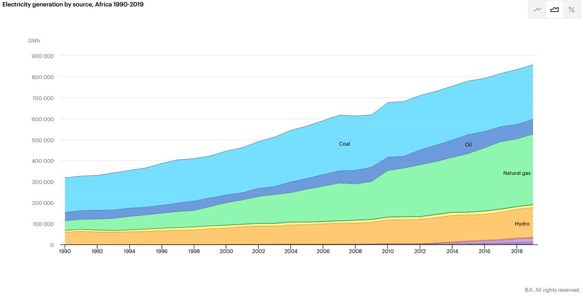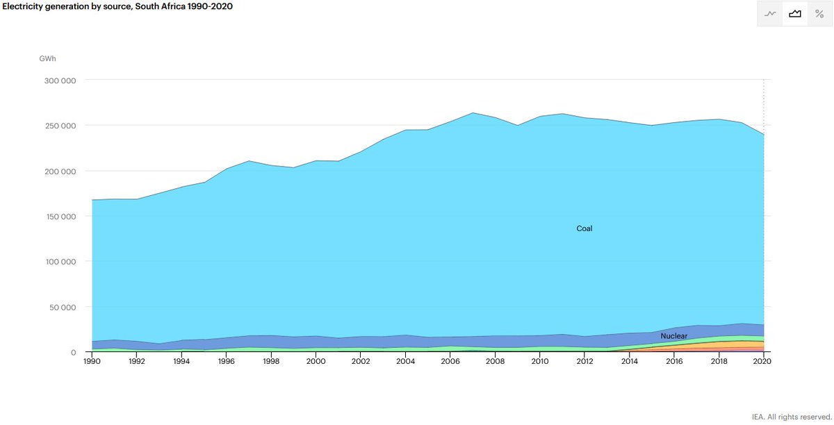 Selon l'IEA,le Chili génère 25TWh/an d'électricité grâce charbon et 15 grâce au gaz, l'Afrique du Sud 210TWh/an de charbon et Oman 37TWh/an de gaz