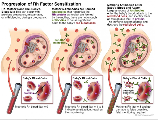 También es importante tener en cuenta el tipo sanguíneo de mujeres embarazadas y sus fetos, ya que pueden ser incompatibles. Durante el parto hay intercambio de fluidos sanguíneos que pueden causar una hemólisis en el recién nacido, es decir, destruir sus eritrocitos,