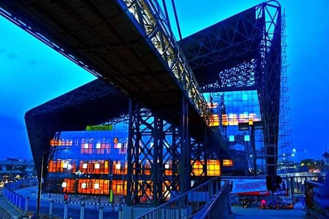 The Oshodi transport interchange is the largest bus terminal in Africa. It is a multi three story facility featuring three separate terminals linked by the skywalk bridge.