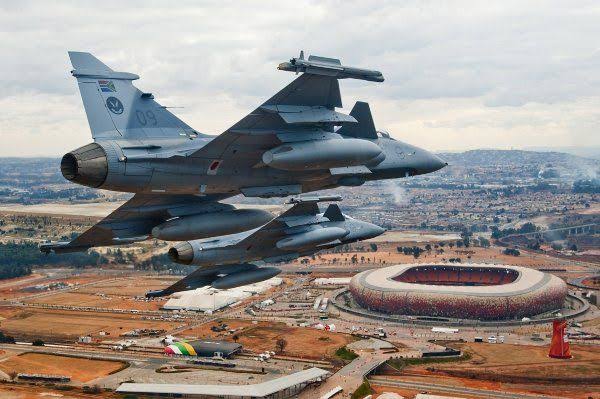 South African air force is pretty modest by design. 10,000 personnel and 221 aircrafts. Seventeen JAS 38 Gripe fighter jets make up the frontline aviation of the SAAF.