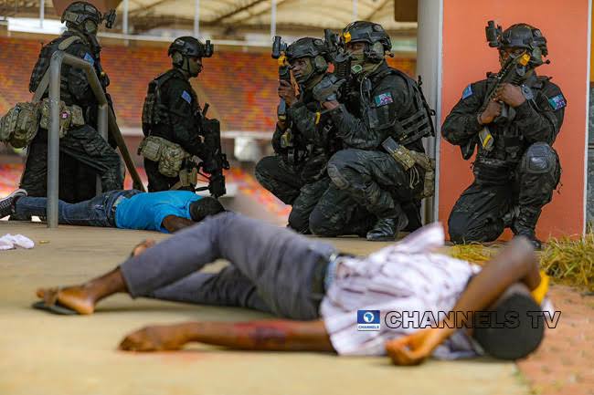 Anti-terrorism simulation at the Abuja National Stadium.