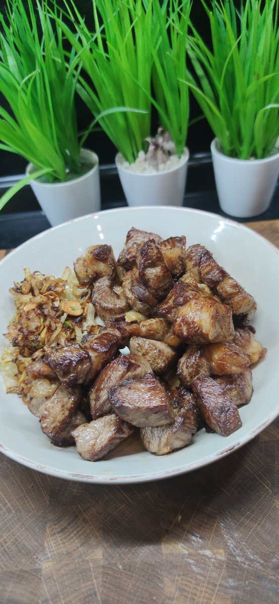 Мясо жарю в два захода, иначе оно будет тупо вариться из-за быстрого охлаждения жира при введении в него значительно более холодного мяса. Температуру держу ниже 200,но выше 160