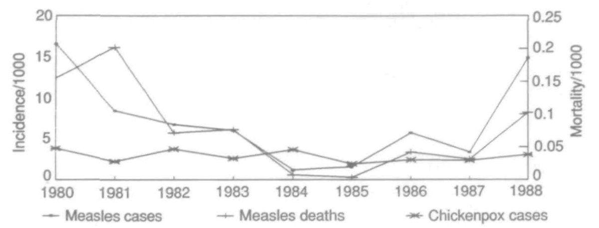 Below shows hypothetical dynamics after vaccination introduced with 50%, 75%, 80% coverage among infants after 4 years... 9/