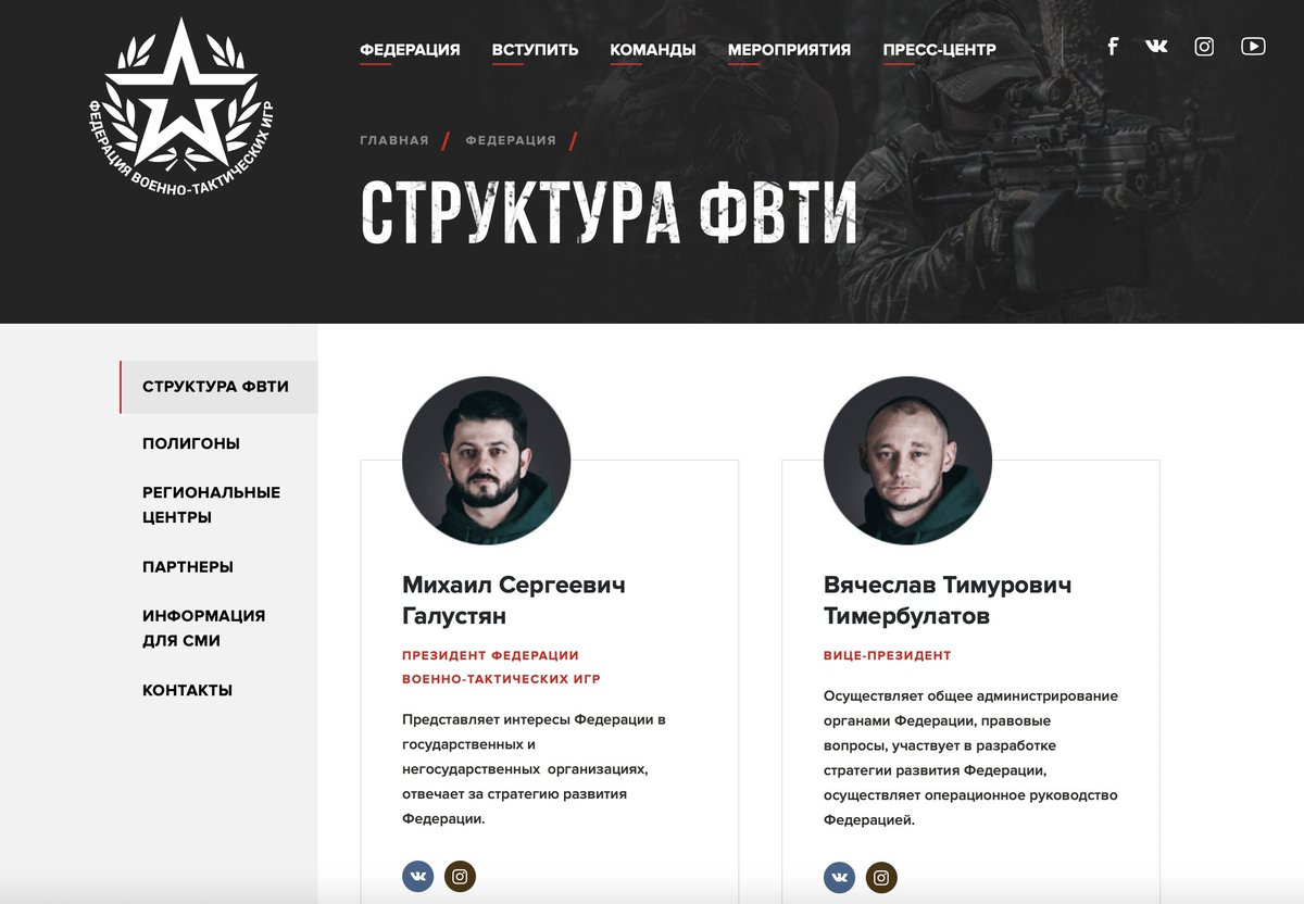 Поддерживает Галустян и Путина, конечно. Был его доверенным лицом на президентских выборах. А ещё Галустян - сам президент. Президент Федерации военно-тактических игр. Замазался в «Юнармии» и прочем