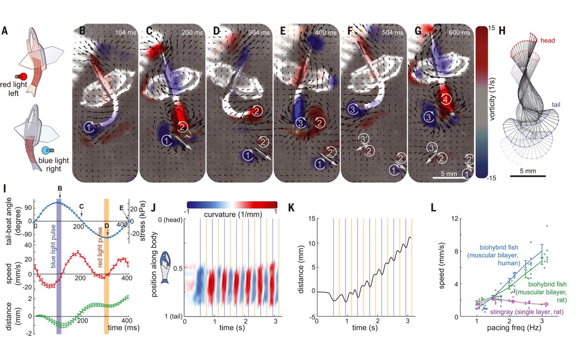 O peixe tem 2 camadas de células musculares, uma de cada lado da barbatana. Quando um lado se contrai, o outro estica. Esse estiramento desencadeia a abertura de um canal de proteína sensível ao movimento, que causa uma contração, que desencadeia um estiramento e assim por diante