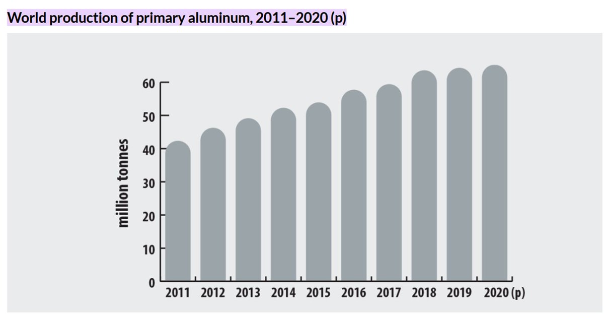 Broadly, Bauxite (“aluminium ore”) refined to Aluminium oxide (alumina) electrolyzed to Molten aluminium (see the graphic)