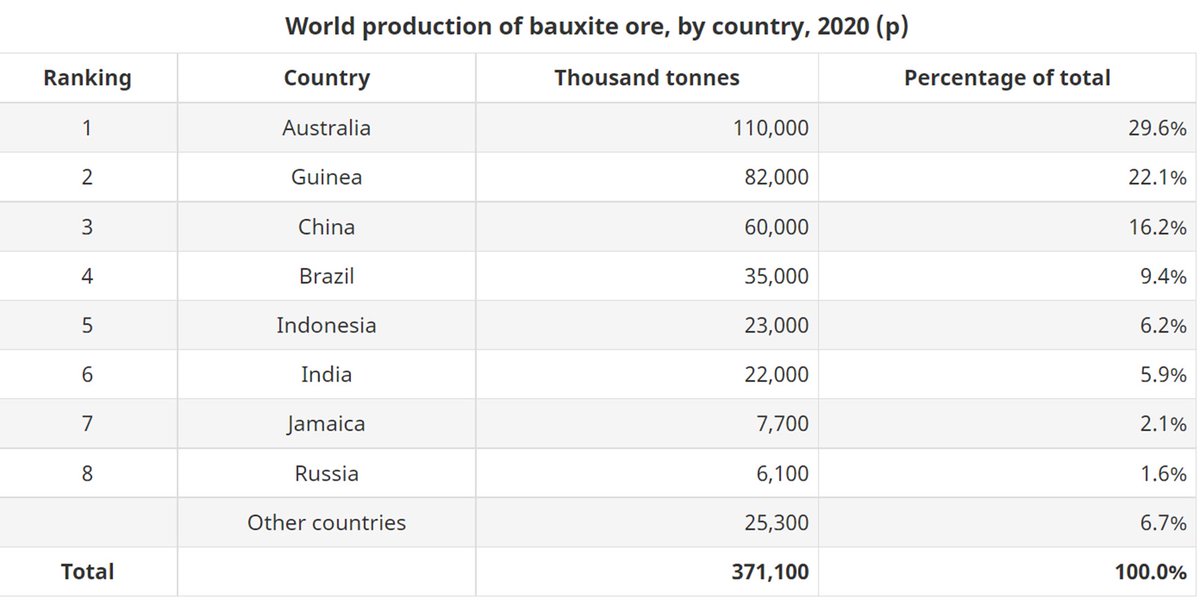 Australia produces > 1/3rd of the world's supply of bauxite.