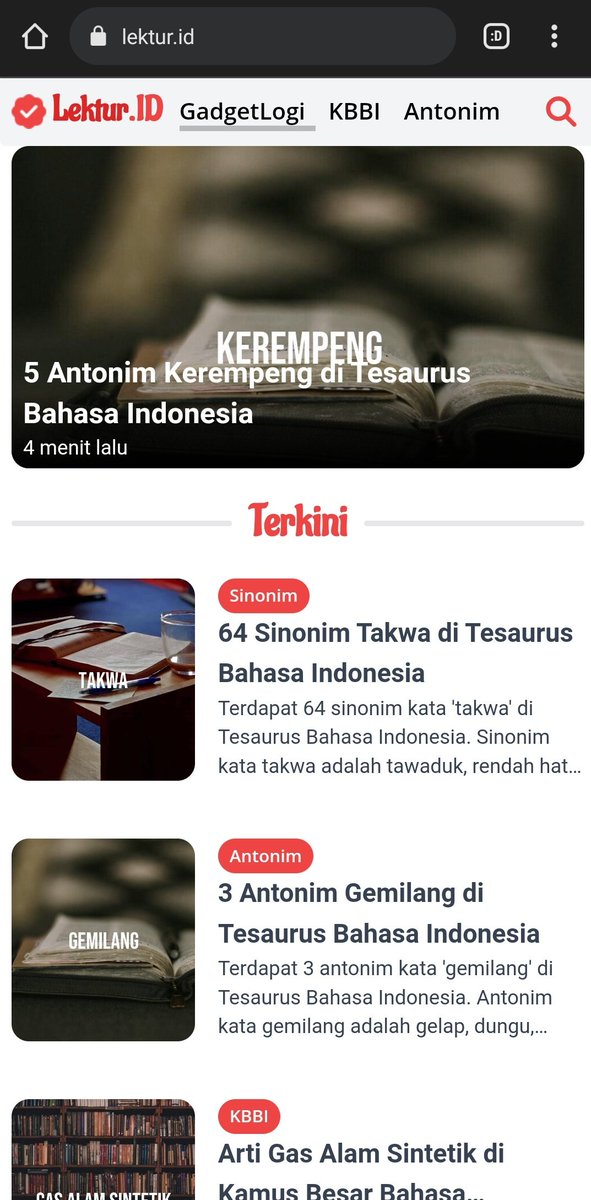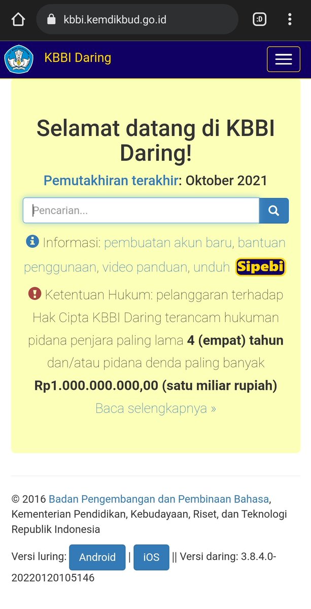 Situs web berisi mesin pencarian untuk Kamus Besar Bahasa Indonesia (KBBI), Tesaurus bahasa Indonesia (antonim&sinonim), Kamus bahasa Inggris-Indonesia dan juga penulisan kata baku dan tidak baku.