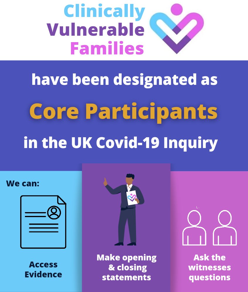 We have participated in NICE as stakeholders and the inquiry as Core Participants (as the only group representing Clinically Vulnerable people).