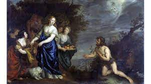 2/11 Όμηρος να μας παρουσιάσει. Όταν ο Οδυσσέας κυριολεκτικά γυμνός & σκεπασμένος μόνο από κάποια φύλλα,ξυπνάει & βλέποντας μπροστά του την Ναυσικά που μας παρουσιάζεται να αιωρείται ανάμεσα στο παραμύθι & την πραγματικότητα (ανάμεσα στην γυναίκα & την Θεά) θαμπώνεται, στην🔽