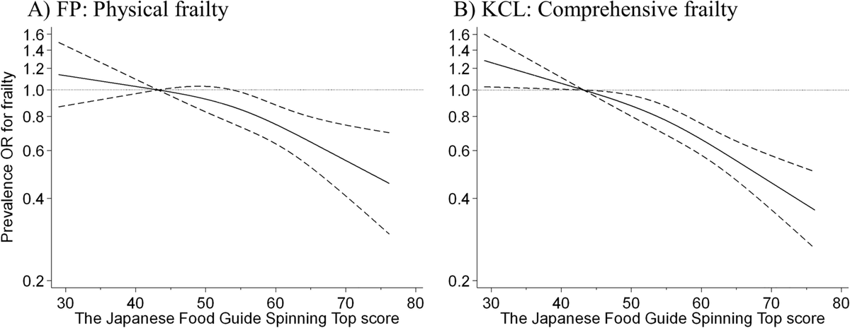 This one found an inverse dose–response relationship between diet quality and prevalence of both physical and comprehensive frailty in adults aged ≥ 65 years living in Kameoka City, Japan.