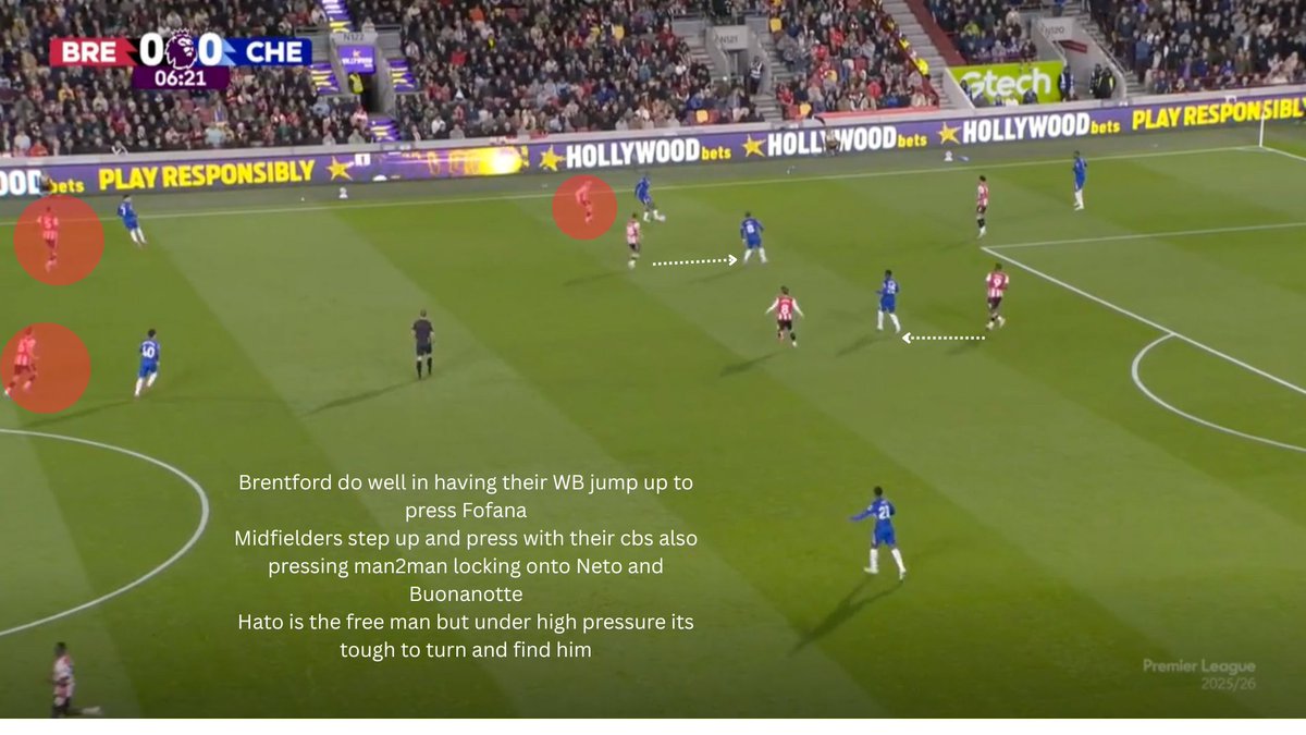 What Brentford did do well is trap Chelsea out wide with the 8 and WB jumping + far side 8 tucking in as well.