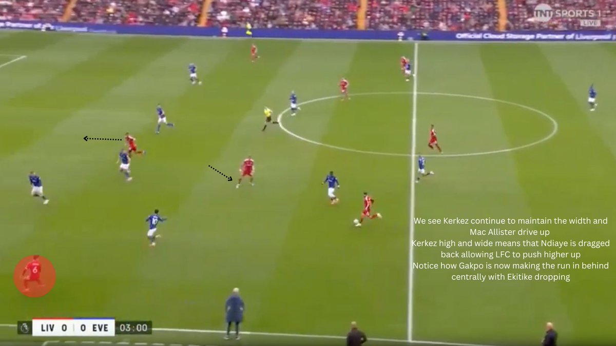 Mac Allister goes deeper as a LCB in possession allowing Kerkez to push high and wide ,dragging Ndiaye with him.