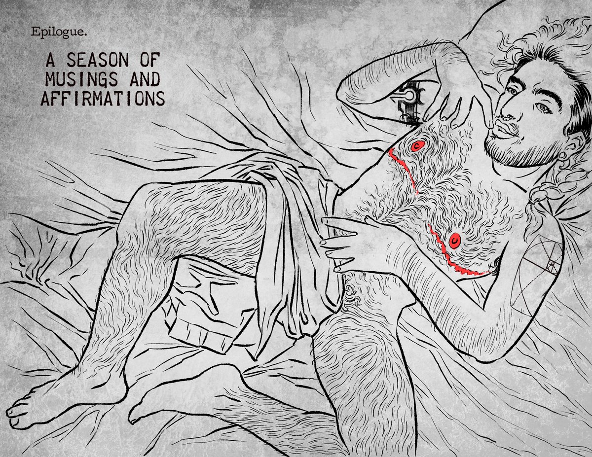 It's a story of the relationship between a trans horror artist and a queer fantasy geek (M/M), accompanied by 60+ illustrations from sweet to scorching hot.