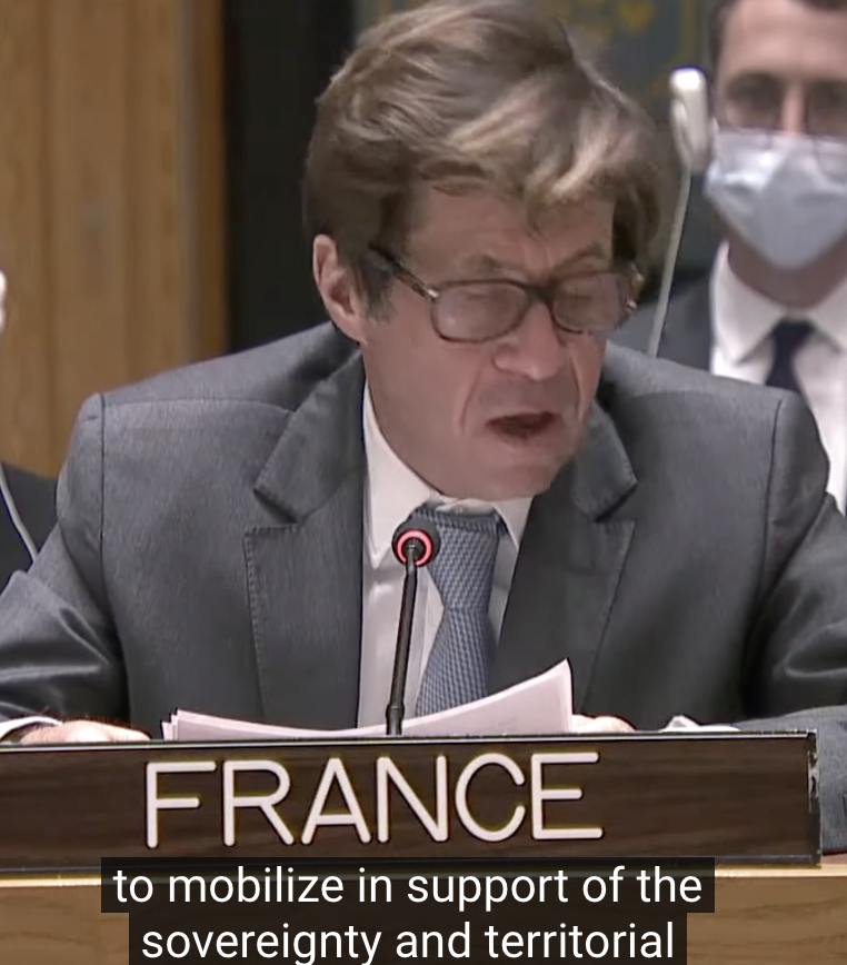 France's ambassador to UN notes that Russia used to say Minsk Agreements were the only path forward. Ironic, given the recognition of Luhansk and Donetsk violates those agreements.
