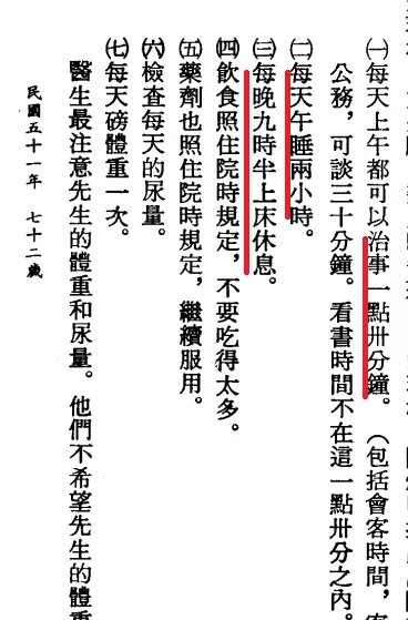照常的演说、做事,是很少的。……这位老师到了90岁,眼睛看不见了,他有钱,每天有人念Times报给他听。先念大标题,再由他指定的什么消息,再详细的念给他听。他也能回信,有时给 Times报写信,都是口授,别人替他打字的。