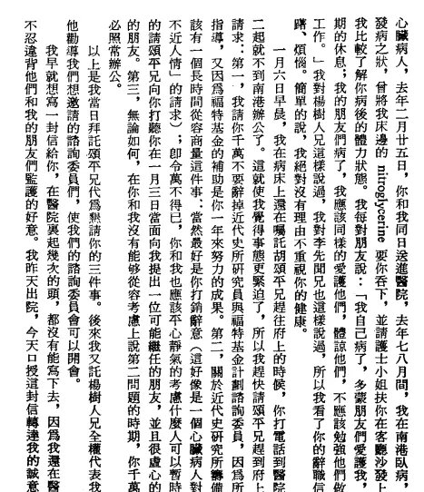 所以,尽管有医生的再三叮咛,住院期间,他还是花了很多精力,来处理中研院的内部问题。他写了一封长信,恳请郭廷以不要辞职: