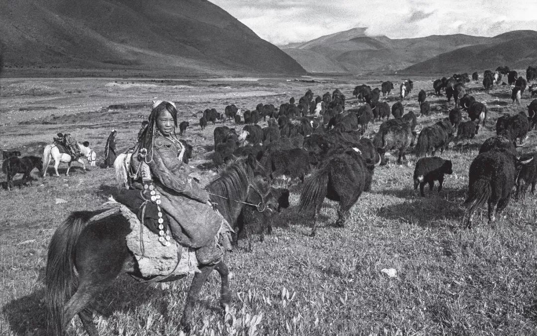 放牧的藏族少女牧民居无定处,赶着牛羊,时常向水草丰美的草地迁移