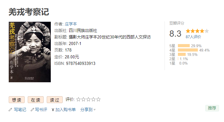 庄学本:《羌戎考察记》,上海:良友图书印刷公司,1937年(图片来源:mbook.kongfz.com