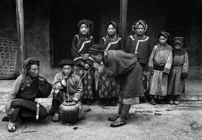 理县、马尔康一带的嘉绒藏民围坛咂酒