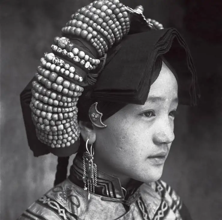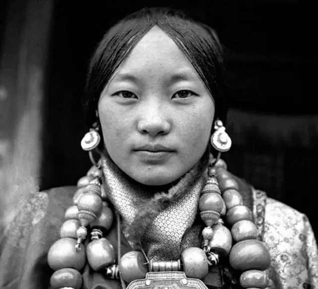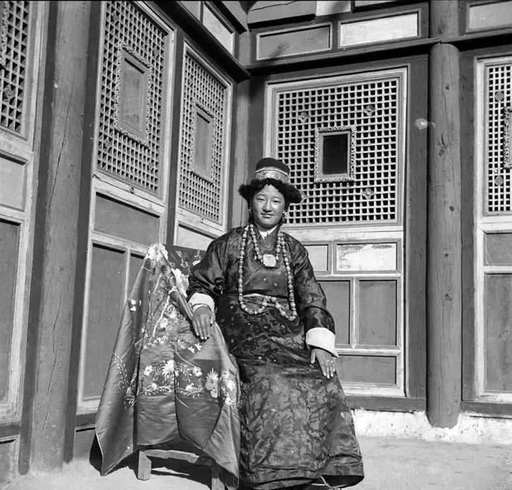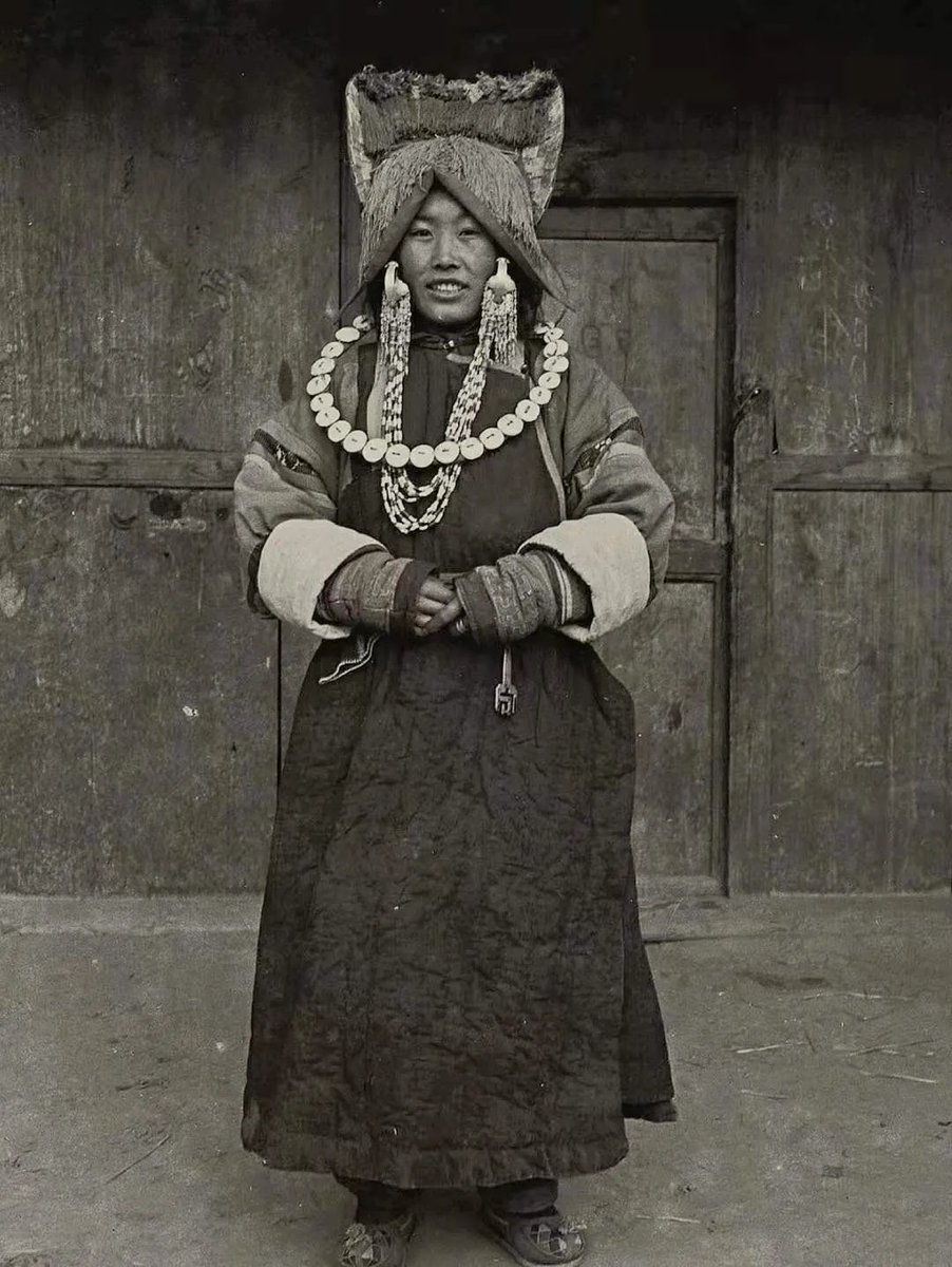 最终,康干土司的母亲接纳了我父亲,这是他的旅行中,最危险的一次。在康干,我父亲还给土司夫人拍了照片,他写道:“穿皮裘,竟体蔽珊瑚珠,戴珊瑚冠,后飘缎带,上缀琥珀珊瑚,大者如拳细者如珠,珠光宝气灼灼射人,总其价值约在万金,华贵诚不亚于江南之贵妇人……”