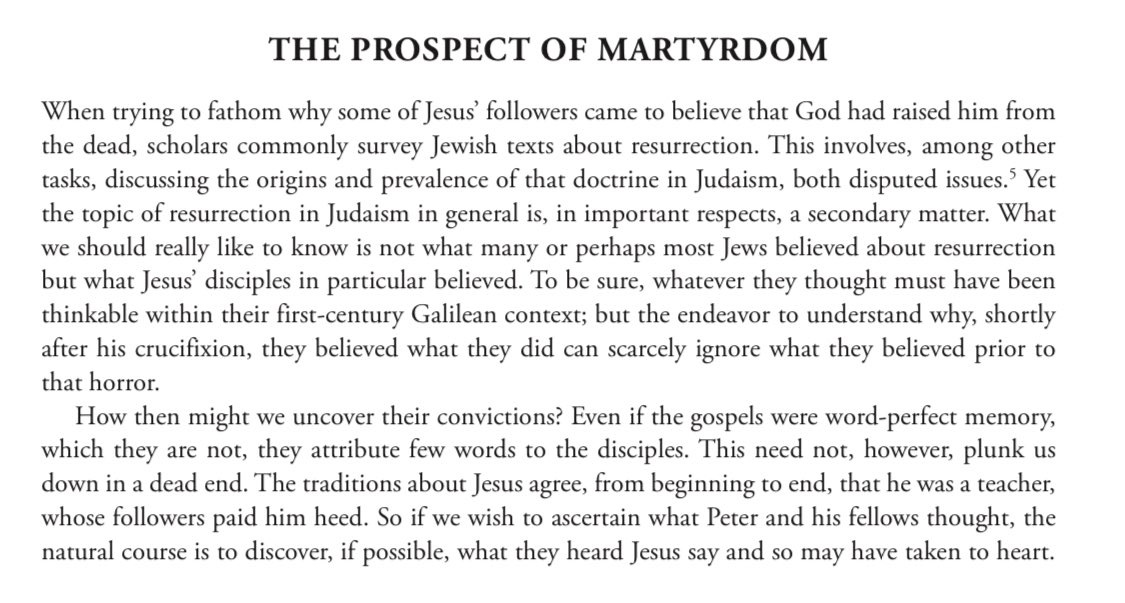 So if we wish to ascertain what Peter and his fellows thought, the natural course is to discover, if possible, what they heard Jesus say and so may have taken to heart.” (The Resurrection of Jesus, 184) ⬇️