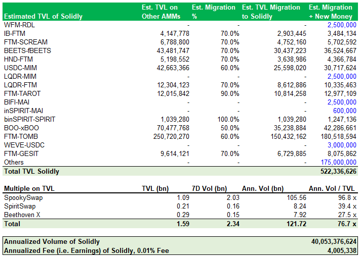 Based on our preliminary research, with existing liquidity in the $FTM ecosystem & the expected new capital to flow in, we expect an indicative $SOLID TVL of $522M, an annual trading volume of $40B, and total trading fees of $4M