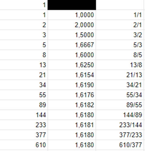 Avant de voir la puissance de Fibonacci il faut comprendre que les divisions entre eux de ces nombres convergent: