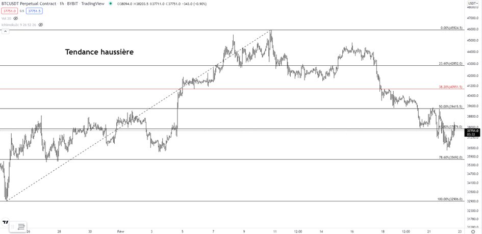 1⃣ 38.2% : Début de changement de la tendance actuelle. Utilisé comme un point clé du changement de tendance.