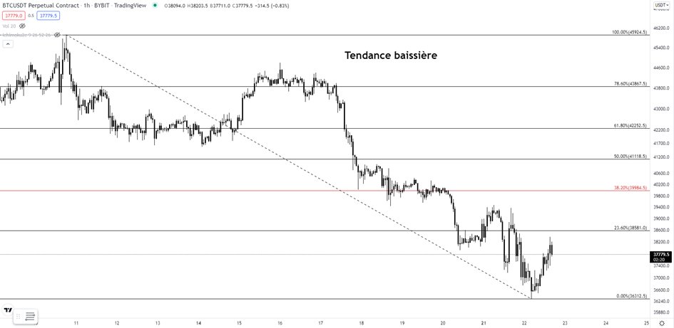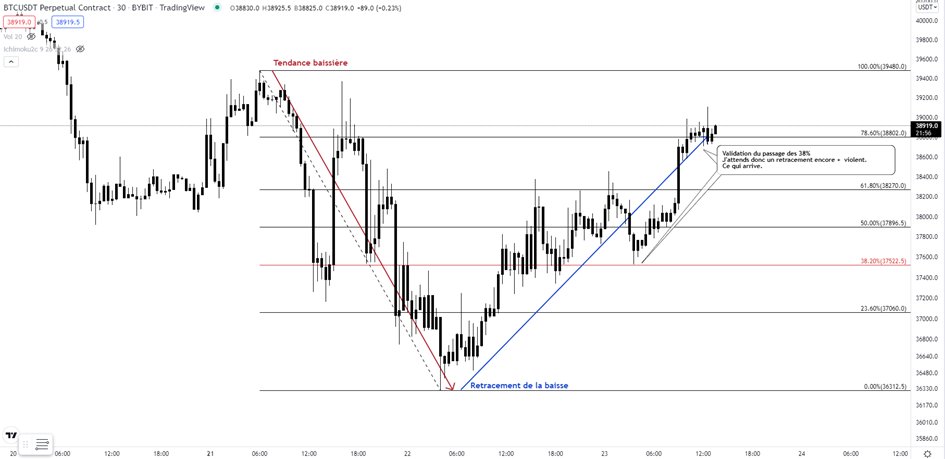 Le passage des 38% m'indique un fort retracement qui pourrait mener à un changement de tendance.