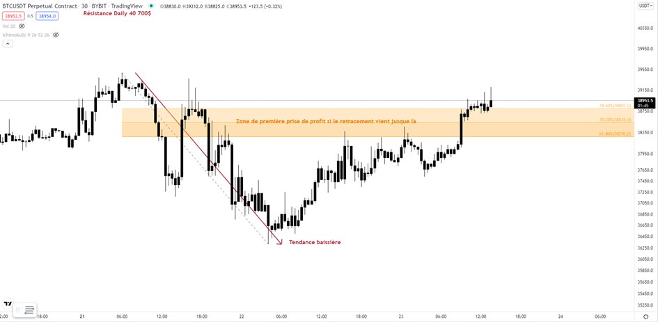 De plus, on parle ici de Spot. Pour du trading cette zone sera mon premier TP que ce soit en Long ou en Short.