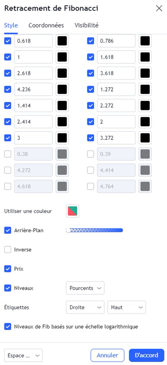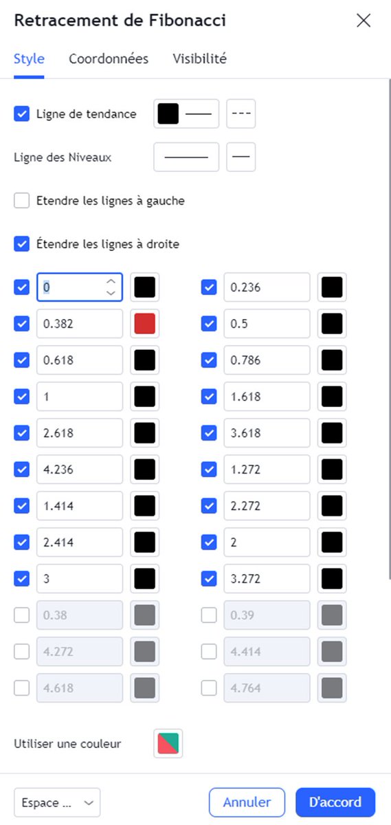 On a à peu près fait le tour. Avant de conclure je vais vous partager les réglages de mes différents Fibonacci.