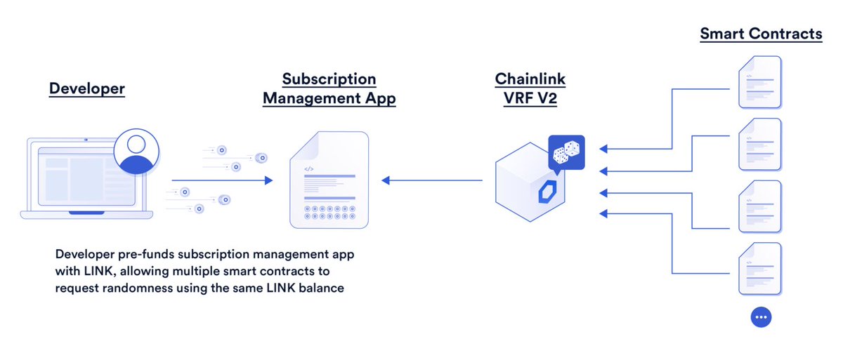2/ For context, Chainlink Verifiable Random Function (VRF) is a secure random number generator (RNG) purpose-built for smart contract applications