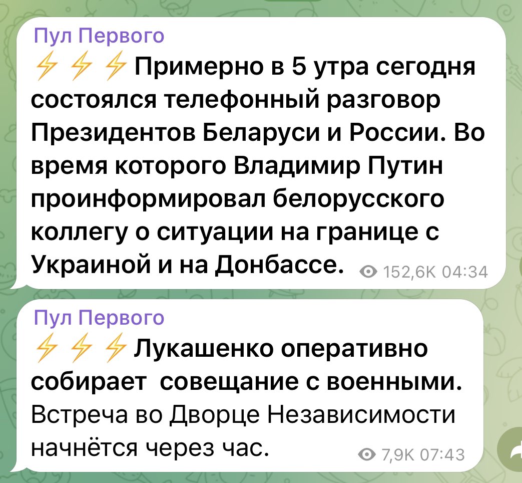 Meanwhile Putin and Lukashenko talked at 5am as normal psychotic murderous dictators do and in one hour Lukashenko will meet with his military leadership.