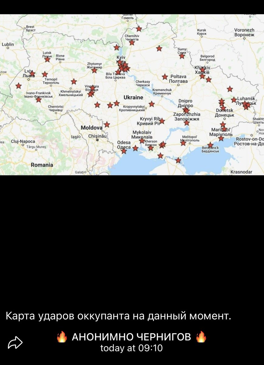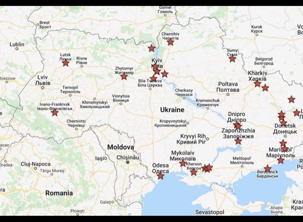 They claim this is a map of what Russia hit already. No source for all I know this is a fake, but we have seen video of explosions in several of these cities.